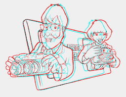* zlaganje obeh slik v rdeče - modrih odtenkih, anaglif tehnika