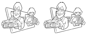 * zrcalno obračanje desne slike in gledanje zamaknjenih slik s pomočjo zrcala
