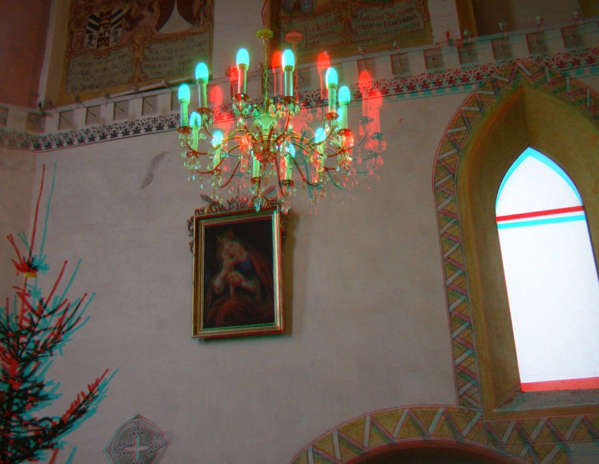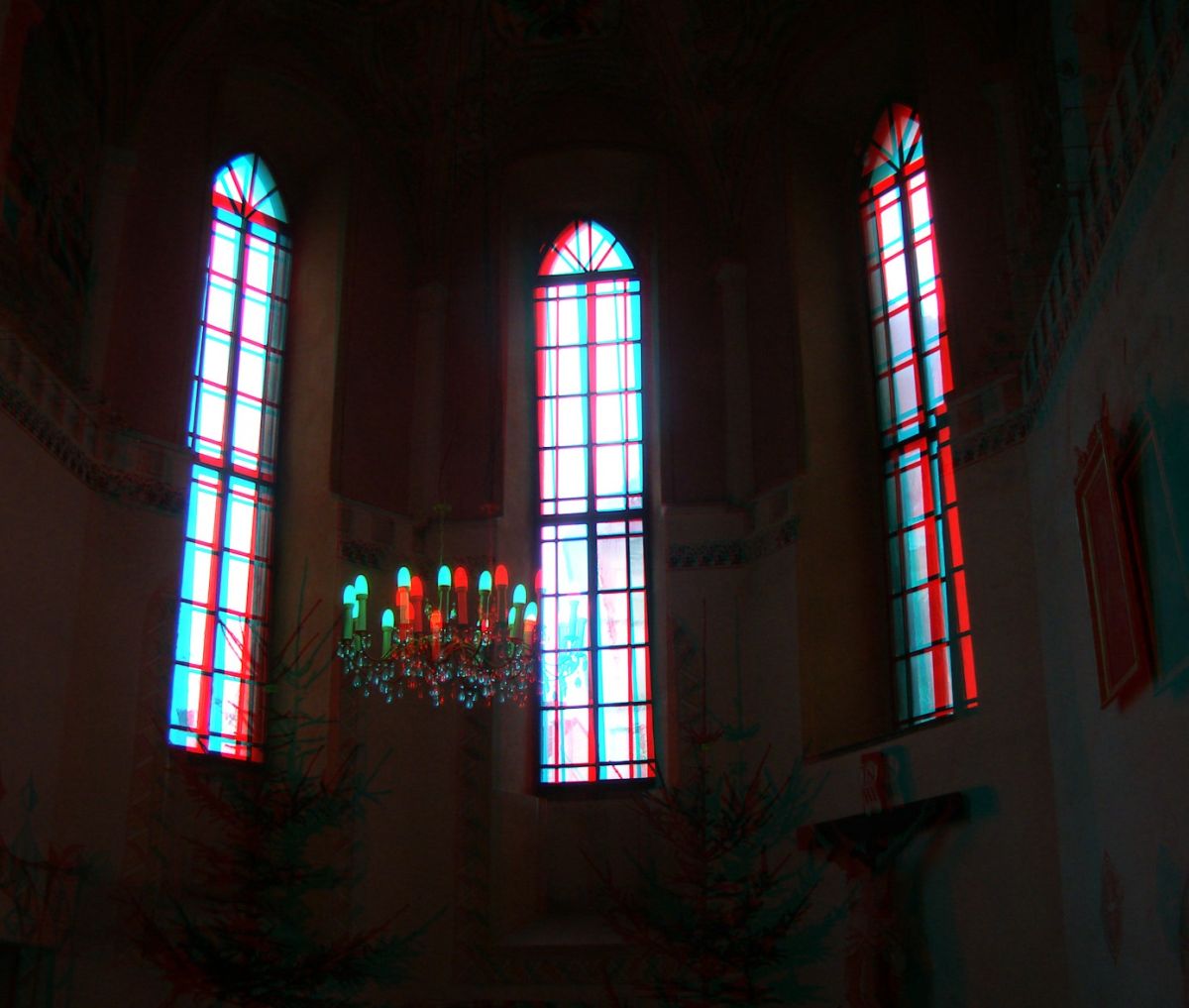 Za gledanje anagliptičnih fotografij so potrebna rdeče-zelena (modrozelena) očala.