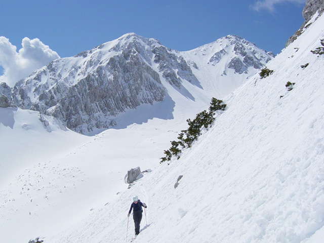 Vračanje s Stola, zoprna/plazovita prečnica pod Jelenčki.