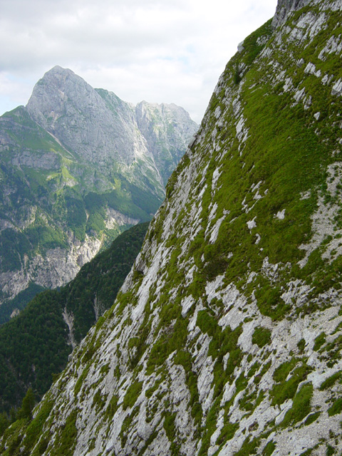 Plošče s prevelikim dodatkom trav (precej strm/siten 'prehod' od 'Mesni' do krnice ob vznožju 'Plati').