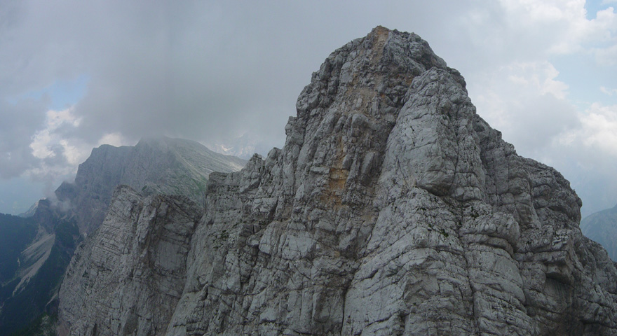 Razgled z vrha Lope: zid proti Mojstrovkam.