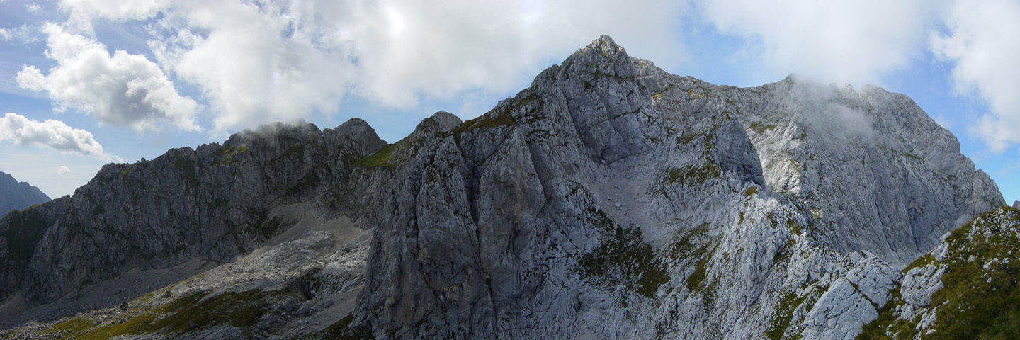 Pelci z Vršaca. V ospredju so Skutniki, za njegovim vrhom se skriva Veliki Pelc. Levo sta dvojni vrh Zadnjega Pelca (s stranskim grebenom do Grive) in Srednji Pelc, desno pa Pelc nad Klonicami.