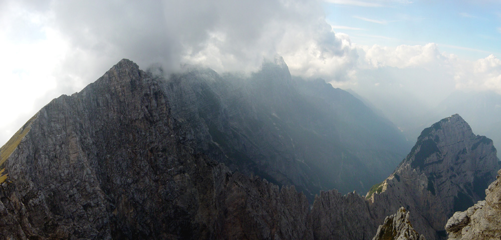 V ospredju Klavni noži in Greben mečev. Zadaj Zabuš in Strma peč.
