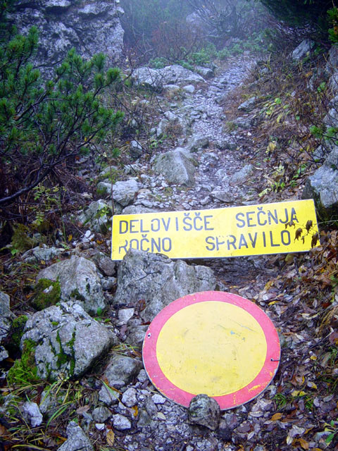 Skrit (prepovedan) odsek markirane potke, ki jo nova cesta neusmiljeno prereže. Za vse ni prostora.