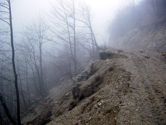 Gozdno podrast so odrezali, vse skupaj porinili (kam bi drugam) po bregu navzdol in med drugim zasuli markirano pot.