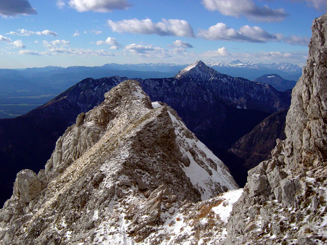 Na južnem grebenu, v ozadju Storžič z Julijci.