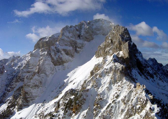 Pogled z grebena. Kukova špica nad Kukovimi prodi vodoravno...