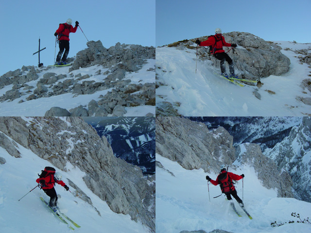 Trmež je moral odsmučati čisto z vrha, a se mu nižje (čez kopen rob) na smučeh ni izšlo...