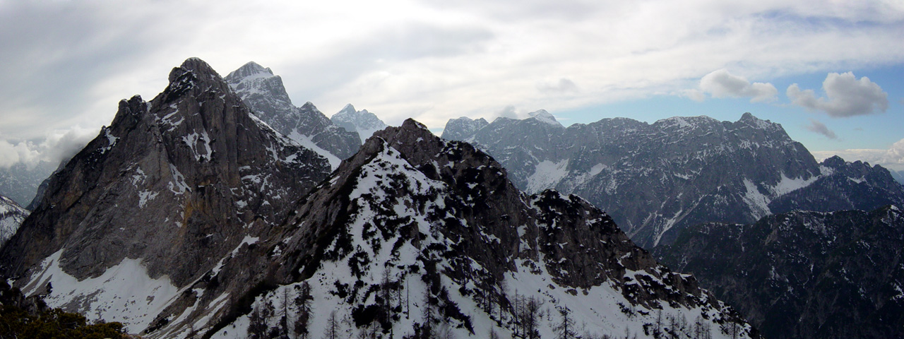 ...in Jalovcu z Rateškimi Poncami (v ospredju Robičje in Vavovje).