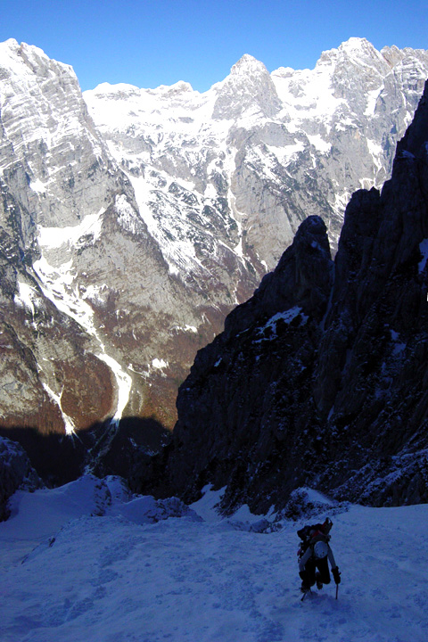V Uroševi grapi, spodnji del (zadaj Stenar - Škrlatica).