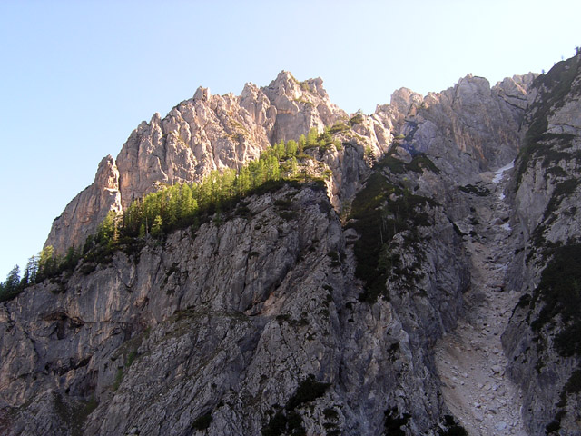 Stržič iz Kačjega grabna (na desni grapa, ki pada s škrbine Vrh nad Rudo - Frdamane police).