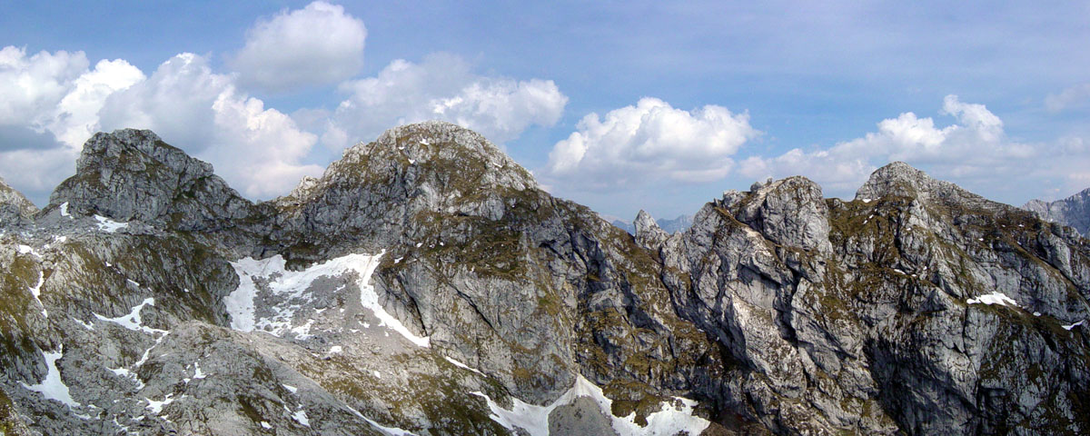 Trentski grebenski biser (z desne: Veliki Jelenk, Skutnik, Špičica).