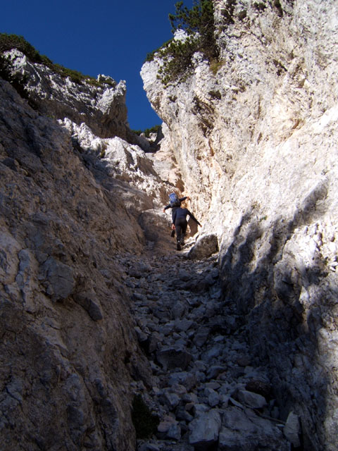 V žlebu, ki pada s škrbine Angolo.
