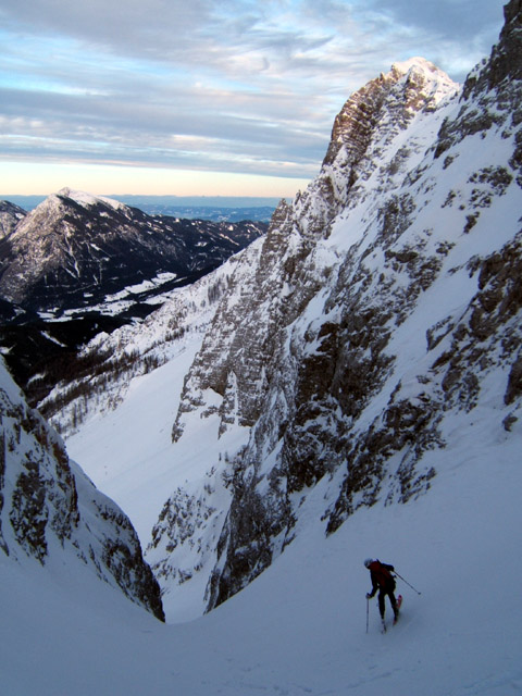 V Cjajnikovi grapi (zgoraj je osvetljen vrh Macesja).