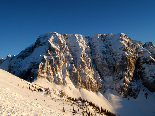 Veliki vrh in Hajnževo sedlo v večerni svetlobi.