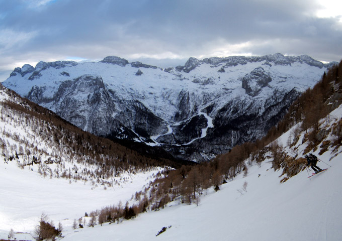 Krnica Livinal del Buinz, zadaj Kaninski greben.