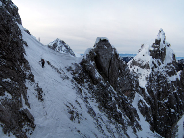 Vračanje, prestop grape (Pleuniggturm, 1809 m).