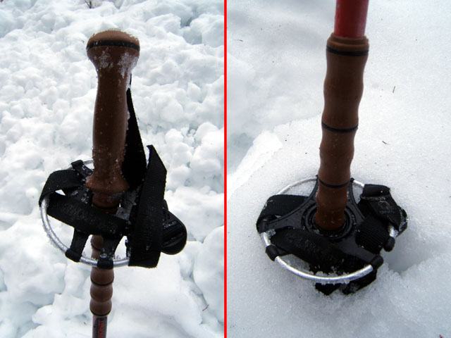 Odlomljeno krpljico sem namestil na ročaj palice. 'Obrnjena' uporaba je bila v globokem snegu zadovoljiva.