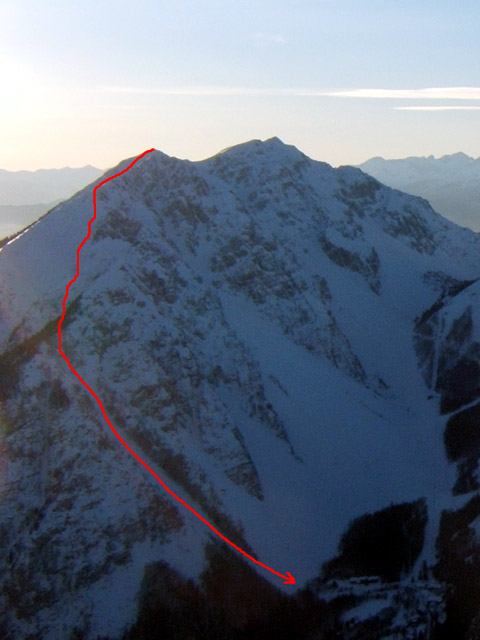 Begunjščica, Vzhodni greben Begunjske Vrtače, III, do 40°, 900 m.