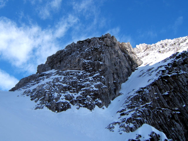 Strma rampa, ki vodi proti vrhu Nabojsa (levo Nabojseva škrbina, 1970 m).