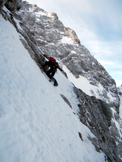 Utrinek v direktnem prehodu na škrbino med KG in MG. Posnetiki navadno 'lažejo' k lažjemu, tale pretirava k težjemu...
