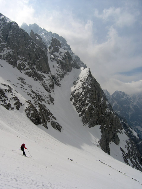 V krnici, zgoraj Špice v Planji, zadaj Jalovec.