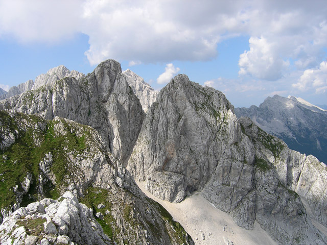 V ospredju Veliki Pelc in raztreskani Skutniki.