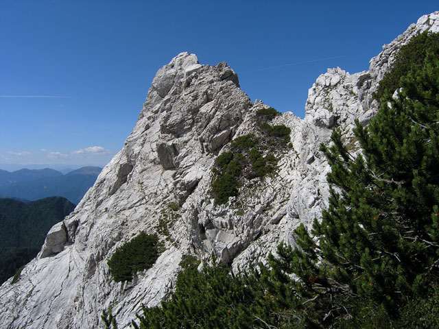 Ostri vršni/južni greben Bucherja po katerem poteka normalka. Težavam se umika na tej strani, druga stran je dobesedno odrezana!