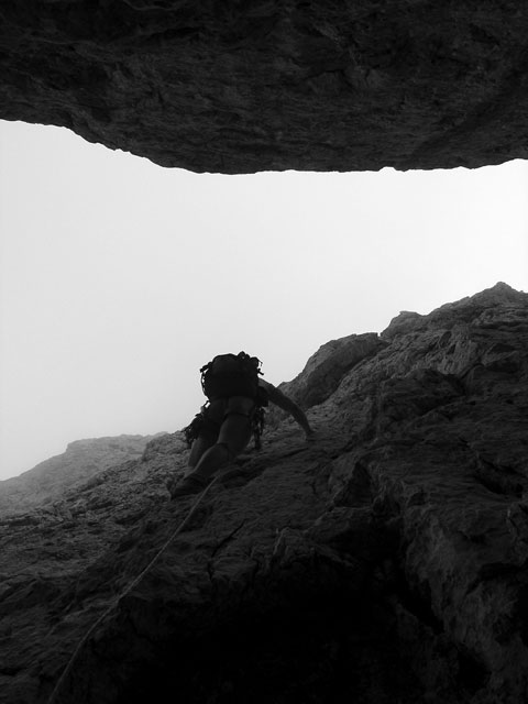 Čudovito plezanje iz fantastično ostro zasekane škrbine...