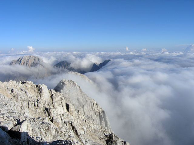 Zahodni (megla se preliva čez greben Poliških špikov)...
