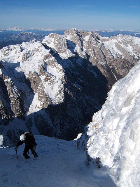 Škrlatica - Rokavi. Hmmm, oster steber čisto na levi nama je pa nekam znan...!