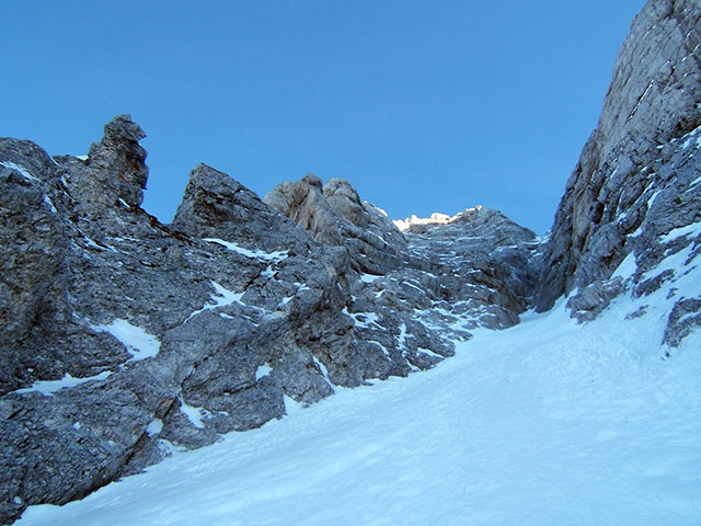 Žleb med Severnim stolpom (Špik nad Zadnjo polico, 2680 m) in Montažem.