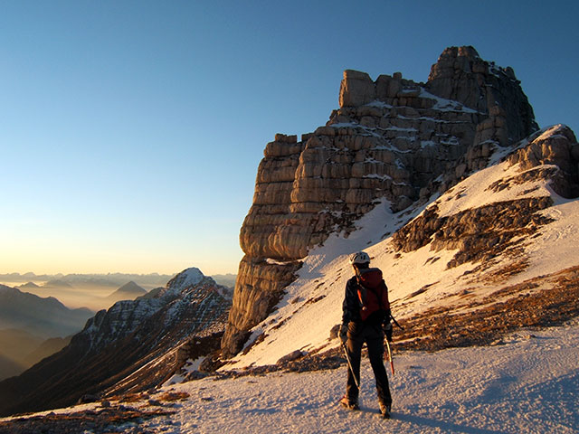 Na Škrbini nad Tratico (Forcella de lis Sieris), desno najmanjši in najostrejši od Špikov nad Tratico (Torrione de lis Sieris).