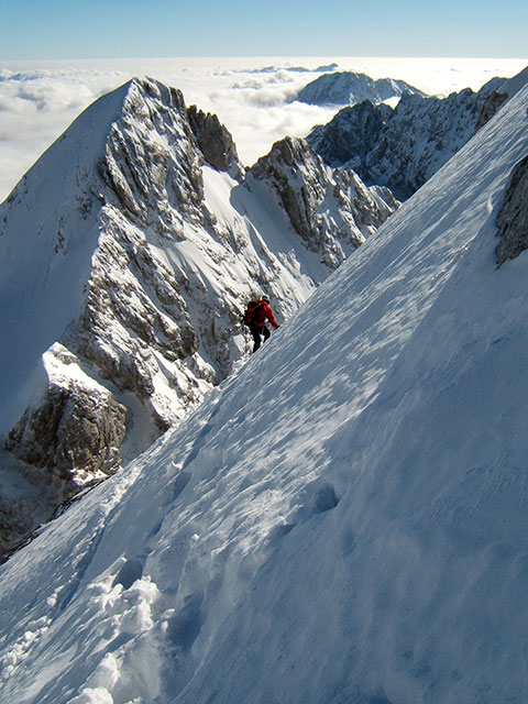 Proti ključnemu delu: izpostavljen prehod nad Loškim žlebom.