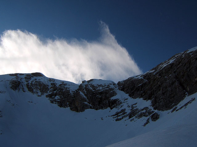 Nesojen spust z Visokega Kanina direktno na Kaninske pode.