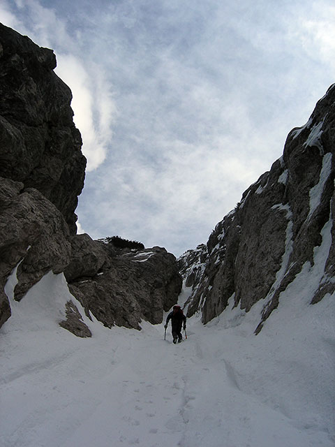 V grapi, ki pada s Forcella Ponza. Pod skokom (1750 m).