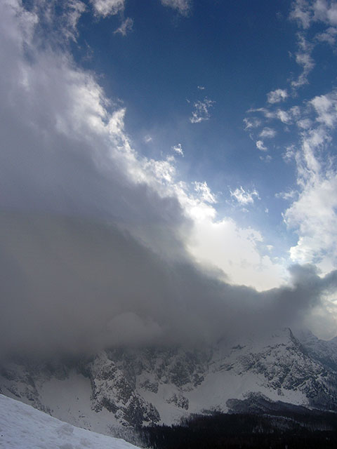 V sestopu, okno nad Mangartsko dolino.