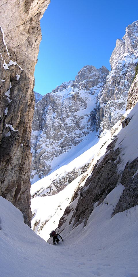 Sestop po žlebu v Cijanerico.