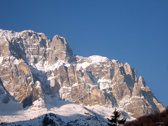 Montaž in Severni stolp, na desni Pleče in Zmajev greben. Levo ob njem poteka Via Amalia.