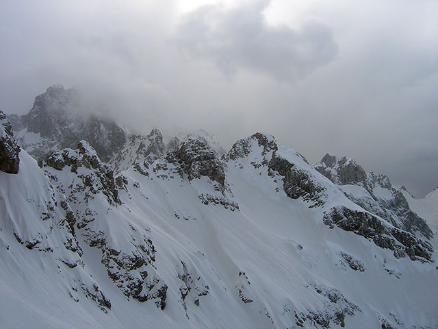 V zatrepu med Mrzlo goro in Mrzlim vrhom: levo Rinke, v sredini Mrzli vrh.