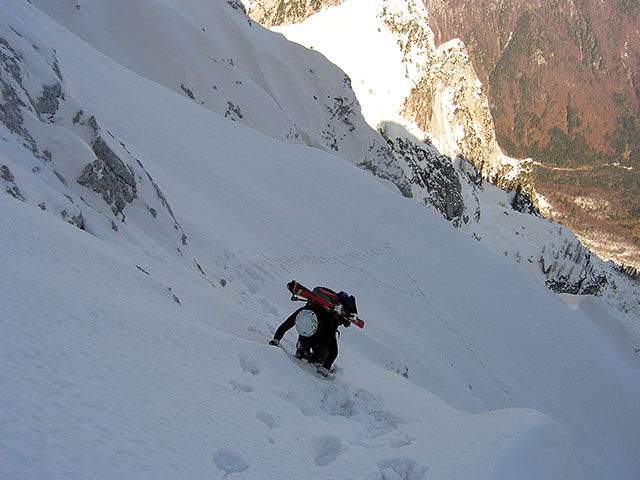 Ključno mesto zgornjega dela smeri, izpostavljena prečka.