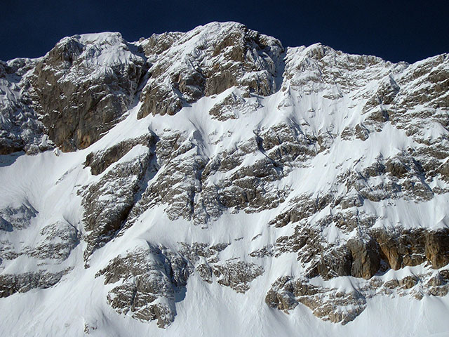 Detajl, prehodi s Triglavskega ledenika na S greben nad Kugyjevo polico.