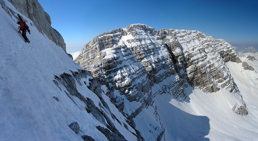 Prečnica desno na greben nad oknom, Hudi vršič.