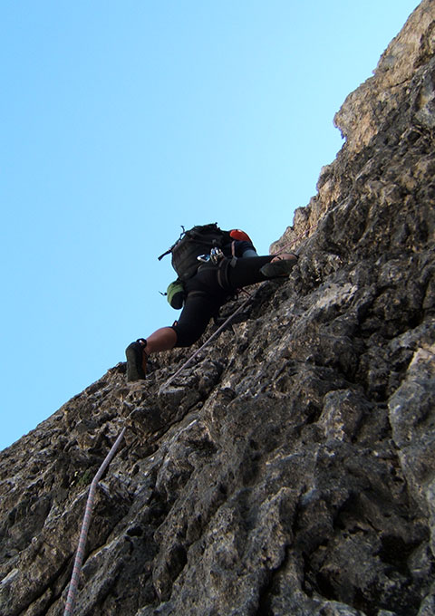 Navpična, odprta stena, bogato razčlenjena skala, odlična kamenina, tekoče in varno plezanje z varovanjem od zgoraj: brezskrbno uživanje! :)