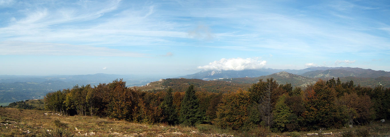 Razgled po Robu (tudi Reber), zadaj se v oblak zakriva Čaven.