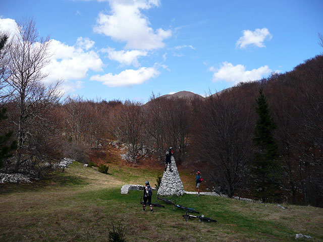 Kamniti polž s 'piramido'.