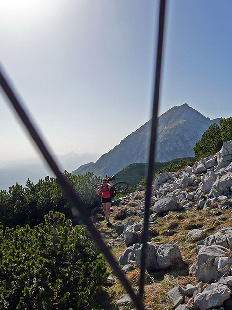 Da ne bo kdo nasedel luštnim kolesarskim fotkam, takole otovorjen pogled je namreč nad prečno potjo povsem običajen! Storžič.