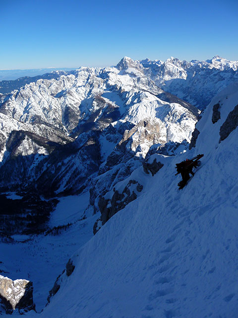 Na vršnem grebenu Divje koze, kjer sva nevarno opast predelala v udobno smučarsko poličko.