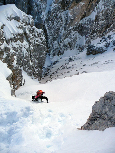 Spodaj se sluti 'naša' grapa, ki pada z Nabojseve škrbine.